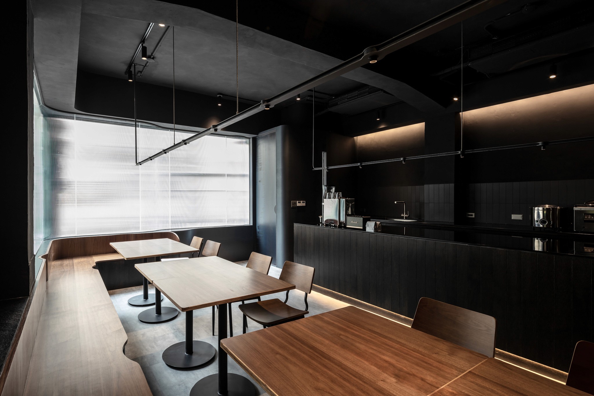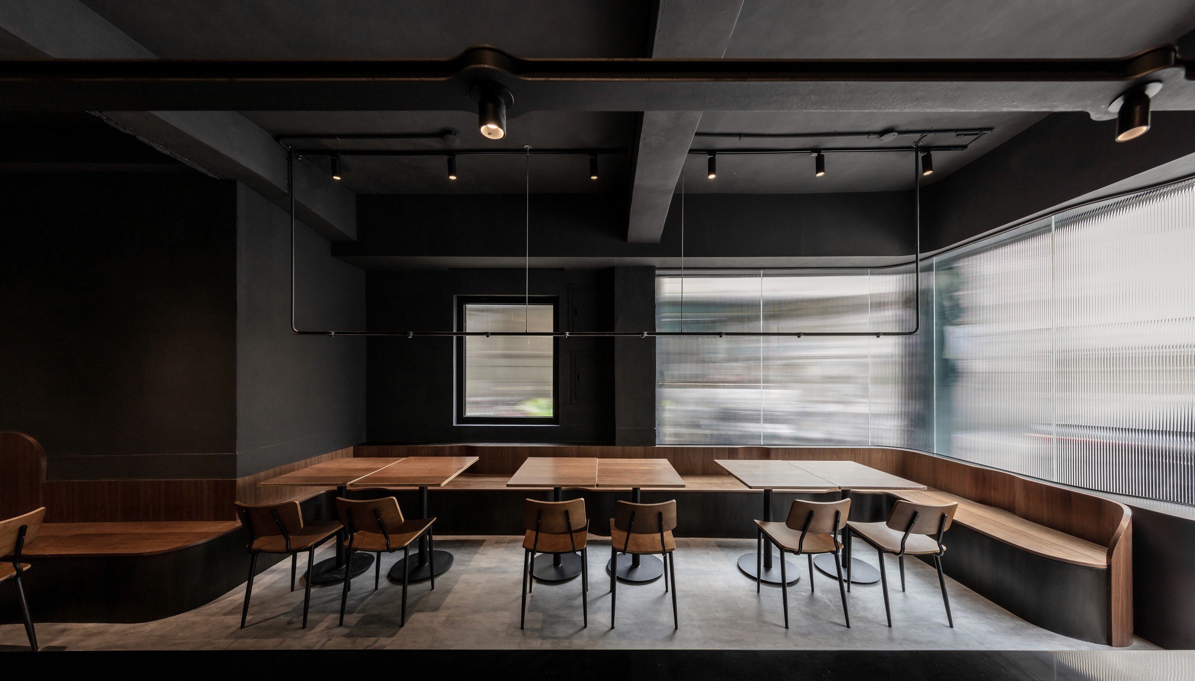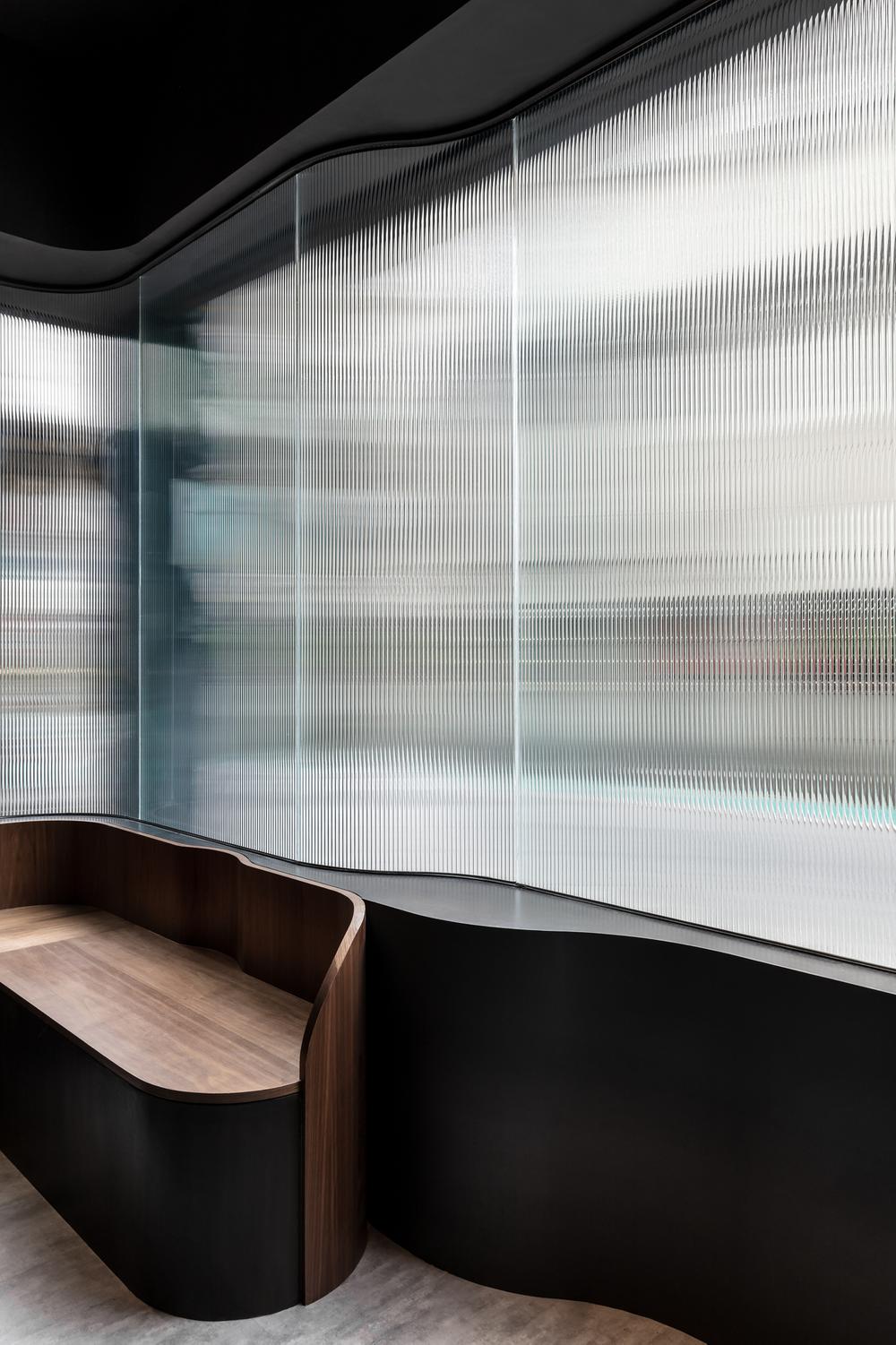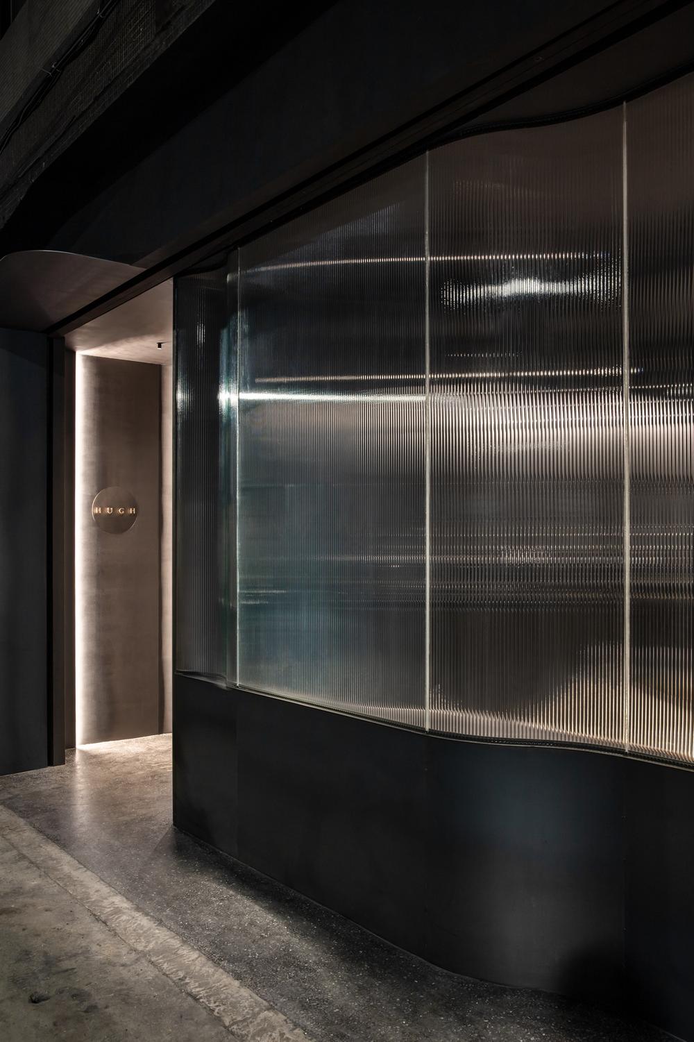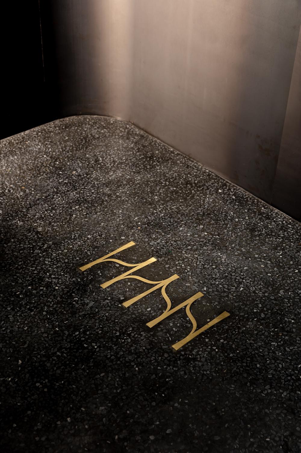 The identity blends the shape of H and the marble pattern, which is often seen on french desserts. The graphic also represents the reeded glass for the facade of the restaurant.