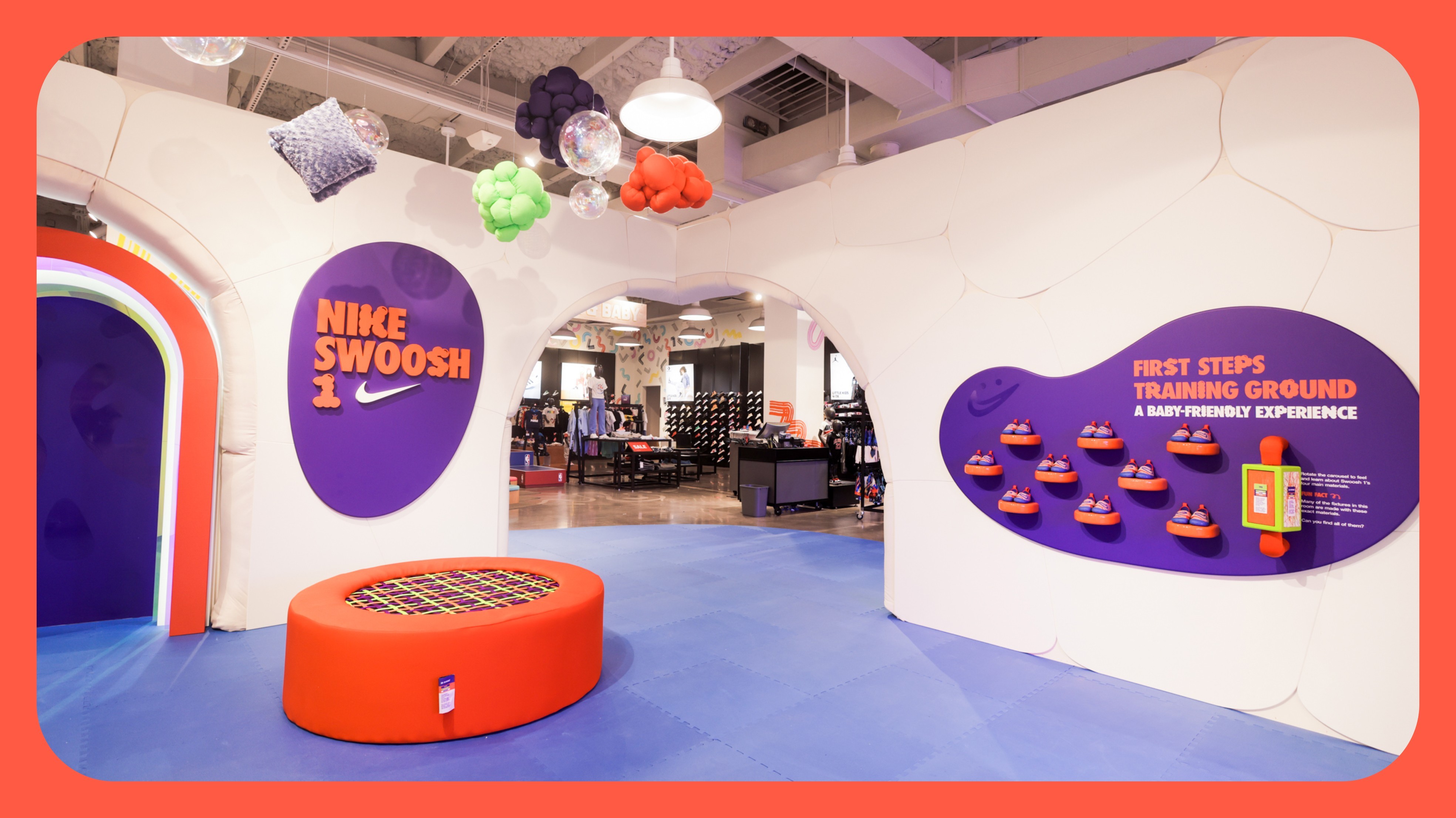 To launch the Swoosh 1, their first podiatrist-approved baby shoe, Nike and Kids Foot Locker created their first baby-friendly training ground, inspired by the shoe’s materials.