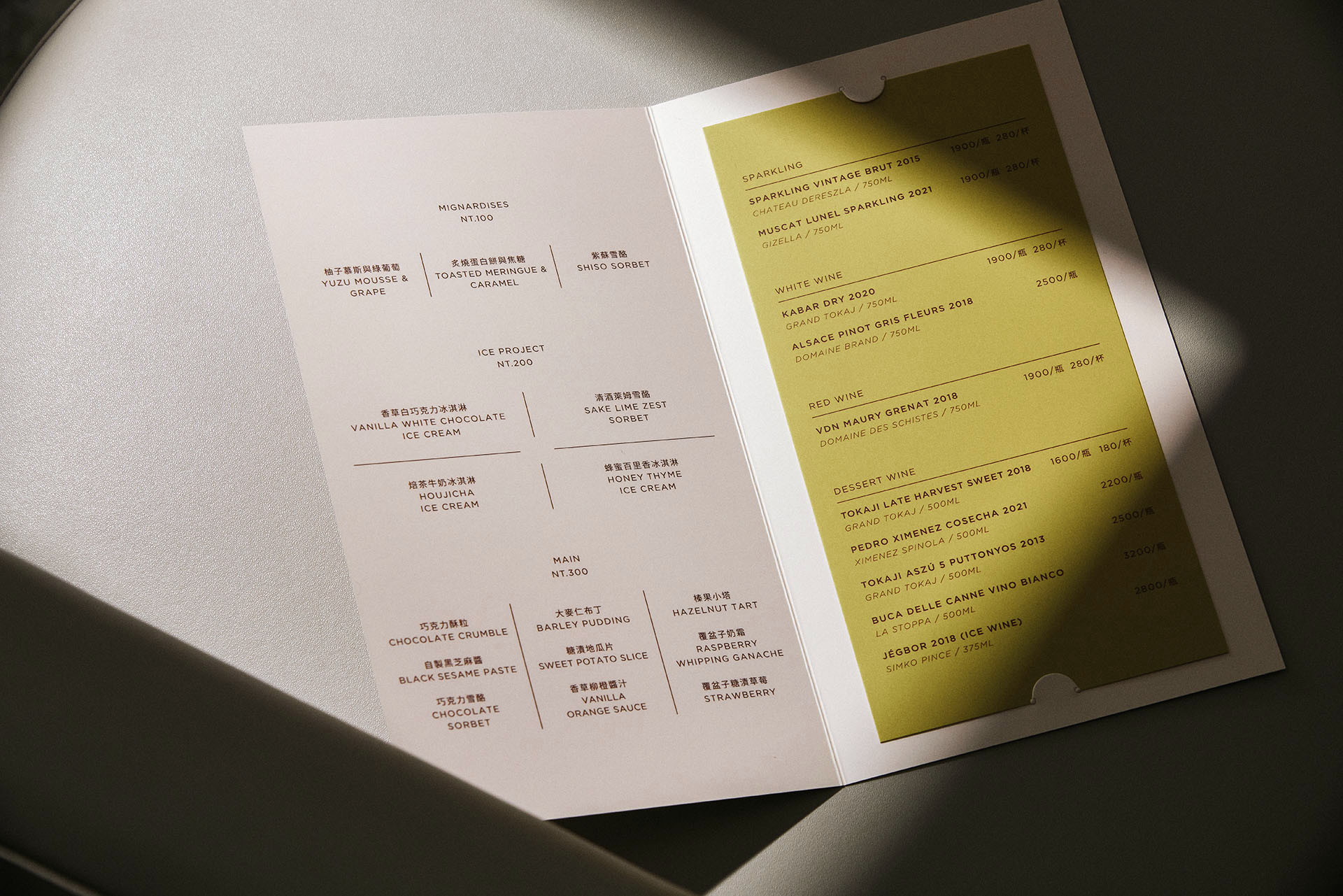 Compared to the refined and understated ambiance of HUGH Dessert Dining, which requires advance reservations and operates exclusively in the evening, HUGH Dessert Bar embraces a relaxed, bright, and casual style. Guests are welcome to walk in during the day to savor delightful afternoon treats paired with dessert wines, creating a cheerful and cozy atmosphere perfect for enjoying light snacks and drinks.